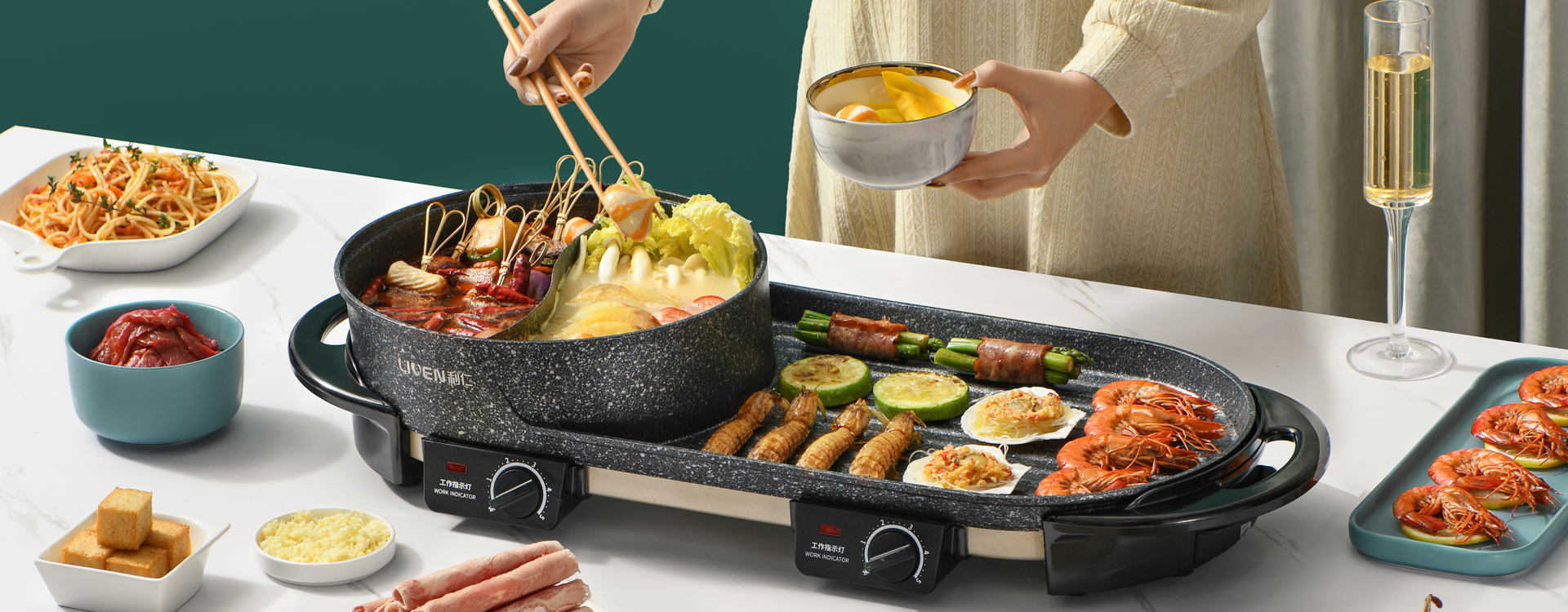 涮烤一體大烤盤、獨立溫控、雙發熱管